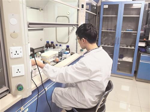 图为检测人员正在进行瘦肉精快检。 陈晓燕摄